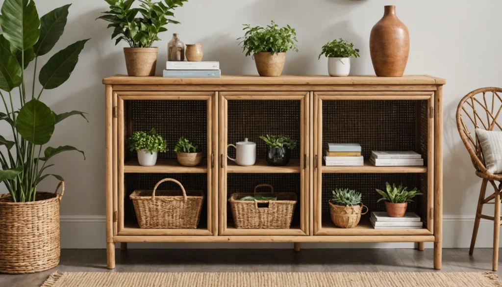 Les armoires intégrant du rotin et de l’osier ont vu leurs ventes augmenter de 25% entre 2023 et 2024. Ces matériaux traditionnels, associés à des structures en bois ou en métal, permettent de créer des rangements aérés et naturellement ventilés. Leur texture distinctive apporte une dimension artisanale très appréciée.